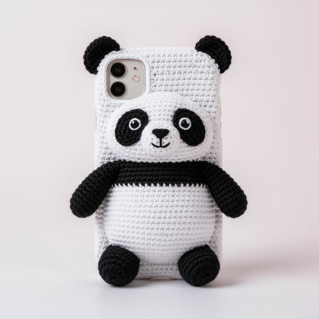 Add a bright, handmade touch to your phone with the Movnt Crochet Panda Mobile Back Cover β¨